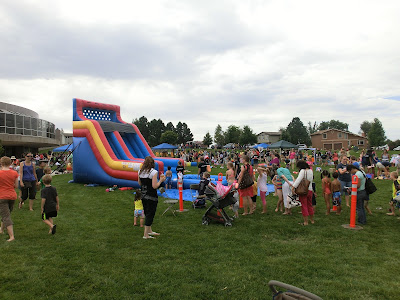 Autre activité à laquelle nous avons participé ce matin, c’était une fête à mi-été pour célébrer un mois de lecture et d’activités dans les bibliothèques. Nous savions que la fête allait avoir lieu sur l’immense pelouse de la bibliothèque de l’Est de Colorado Springs, de 10h à midi, et c’est à peu près tout.