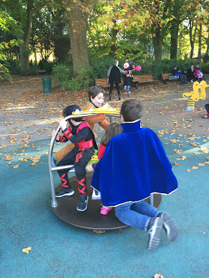 We therefore bought new costumes for each of the 4 kids a few days before, whereas last year they had reused their old costumes. In fact they love mixing their costumes and create new ones. But this year they each chose a new costume. They were dressed up and we went to “parc des Poussins”, THE park of Lille with rides and attractions. The park staff encourages children to come dressed up for October 31.