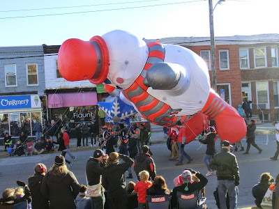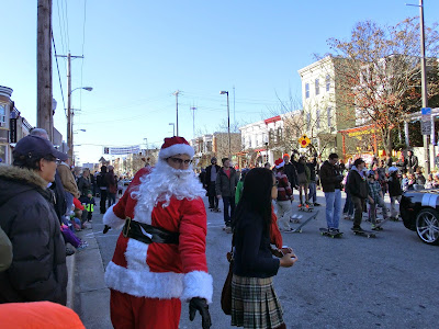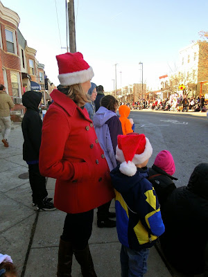 En restant « local », dimanche dernier il y avait également près de chez nous, à Hampden (un des quartiers de Baltimore) the Mayor’s Christmas Parade. Malgré le froid nous y sommes allés avec des amis mais ne sommes pas restés jusqu’au bout. Bien que contrairement à ce qui était prévu la Maire de Baltimore, Stephanie Rawlings-Blake ne se soit pas montrée à la parade, celle-ci était très sympathique et  nous a beaucoup fait penser à la parade du 4 juillet à laquelle nous avions assistée, à cause de sa coloration très « commerces et associations locales », avec le froid en plus.