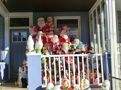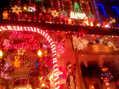 Sans oublier les illuminations un peu partout. De plus en plus de maisons allument tous les soirs des guirlandes lumineuses les décorant et recouvrant plus ou moins entièrement. Et il y a aussi des petits « pères noël » en plastique ou en ballons gonflables qui sont apparus devants beaucoup de maisons.