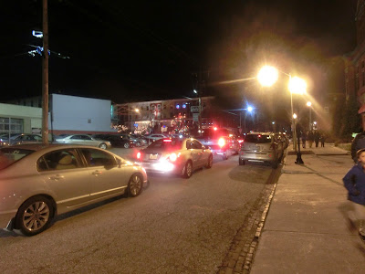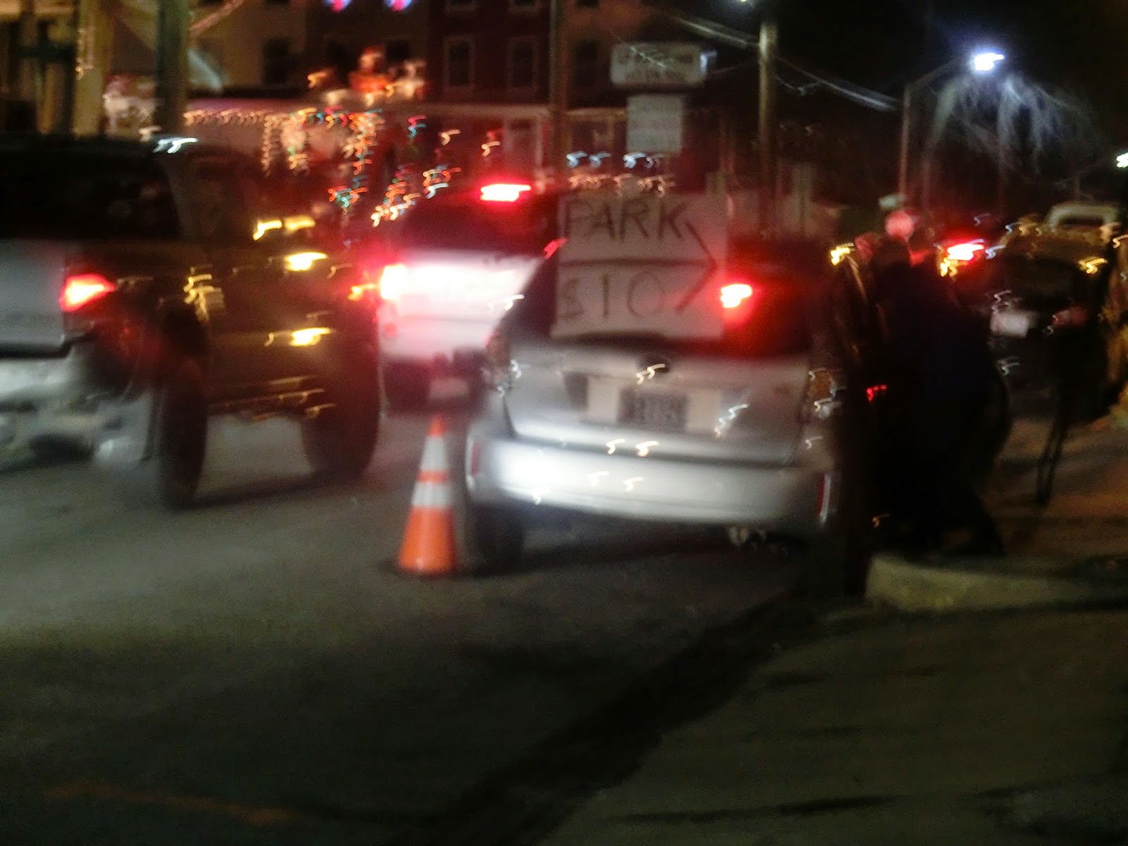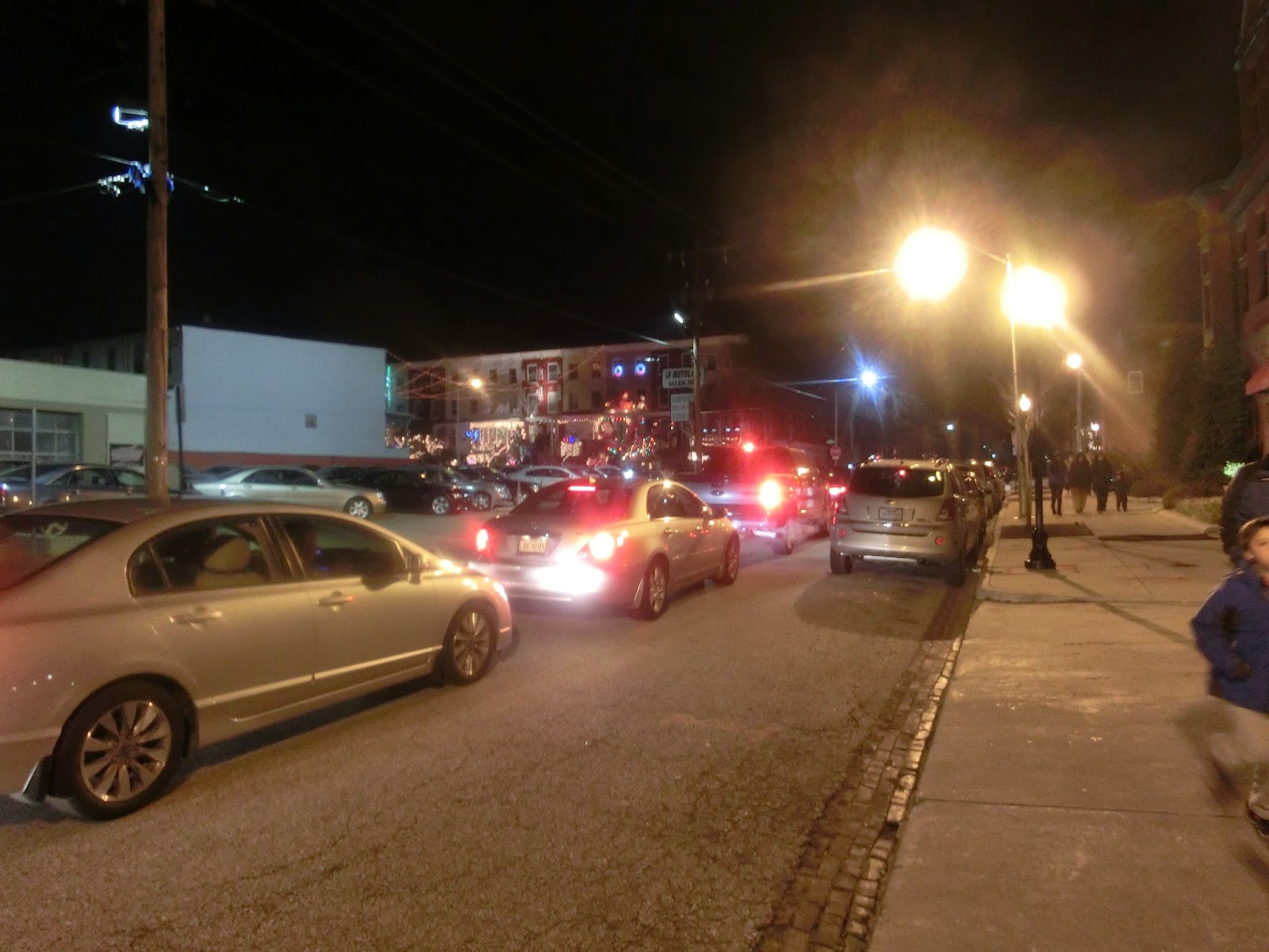 Nous avons pourtant constaté une différence cette année : depuis début décembre tous les WE il y a de nombreux visiteurs dans notre quartier pour venir voir les illuminations de la 34th street. Souvenez-vous en, ces illuminations font partie des 10 hot spots à voir absolument pendant les fêtes de fin d’année aux Etats-Unis… Et il semblerait que beaucoup de gens font le déplacement (surement de Washington DC et peut-être de plus loin ??) pour venir les voir. Du coup il est absolument impossible de sortir en voiture ces soirs-là. Et il y a des petits malins qui louent leur place de parking… Mais comme toujours ça reste bon enfant et il y a une très bonne ambiance. Jugez-en vous-même !