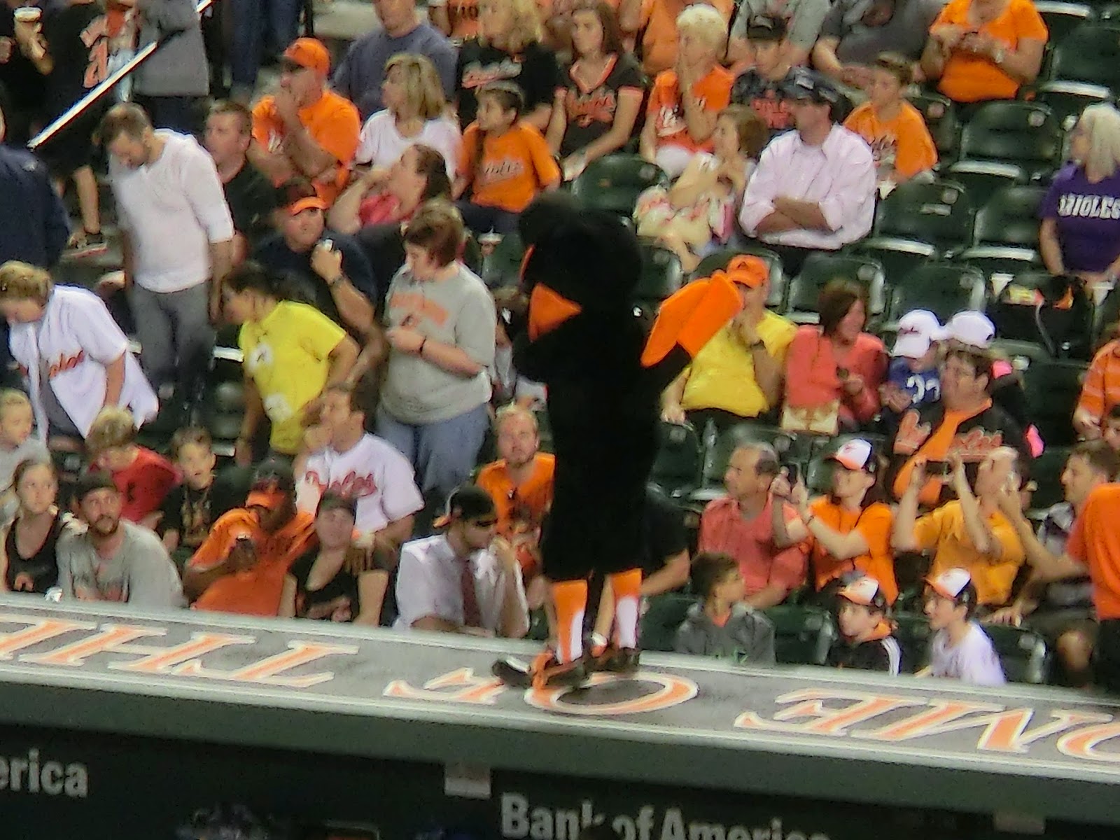 Je suis incapable de vous parler tactique de jeu … j’avoue je n’ai rien compris, si ce n’est qu’il y a eu 3 home runs (c’est-à-dire que le batteur a envoyé la balle suffisamment loin pour avoir eu le temps de faire un tour complet du terrain) dont 2 au bénéfice des O’s. Bien évidemment la foule était en délire et finalement les Orioles ont gagné le match.