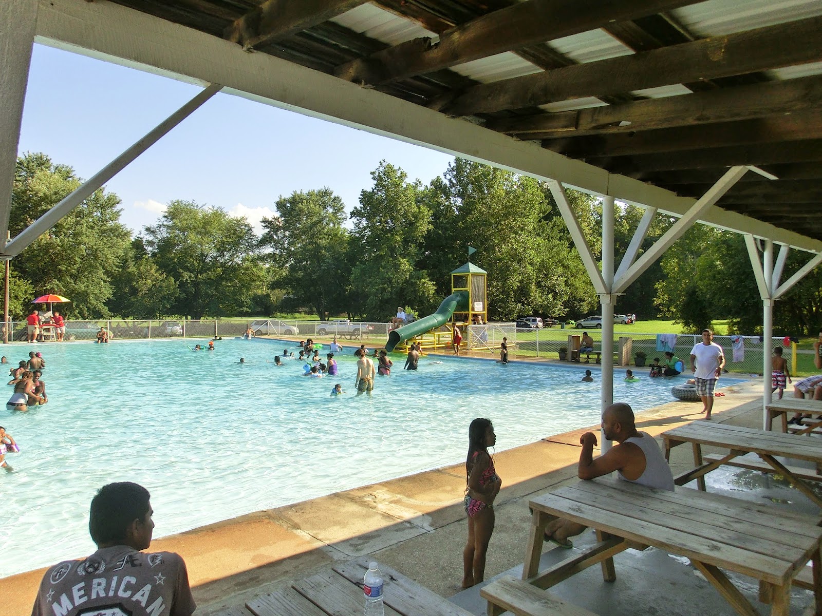 On peut généralement amener à boire et à manger ainsi que son sac et sa serviette et pique-niquer tout à côté, soit dans l’herbe, soit sur des tables prévues à cet effet. Et il faut dire que les américains sont très disciplinés : je n’ai jamais vu le moindre débris alimentaire dans ces piscines.