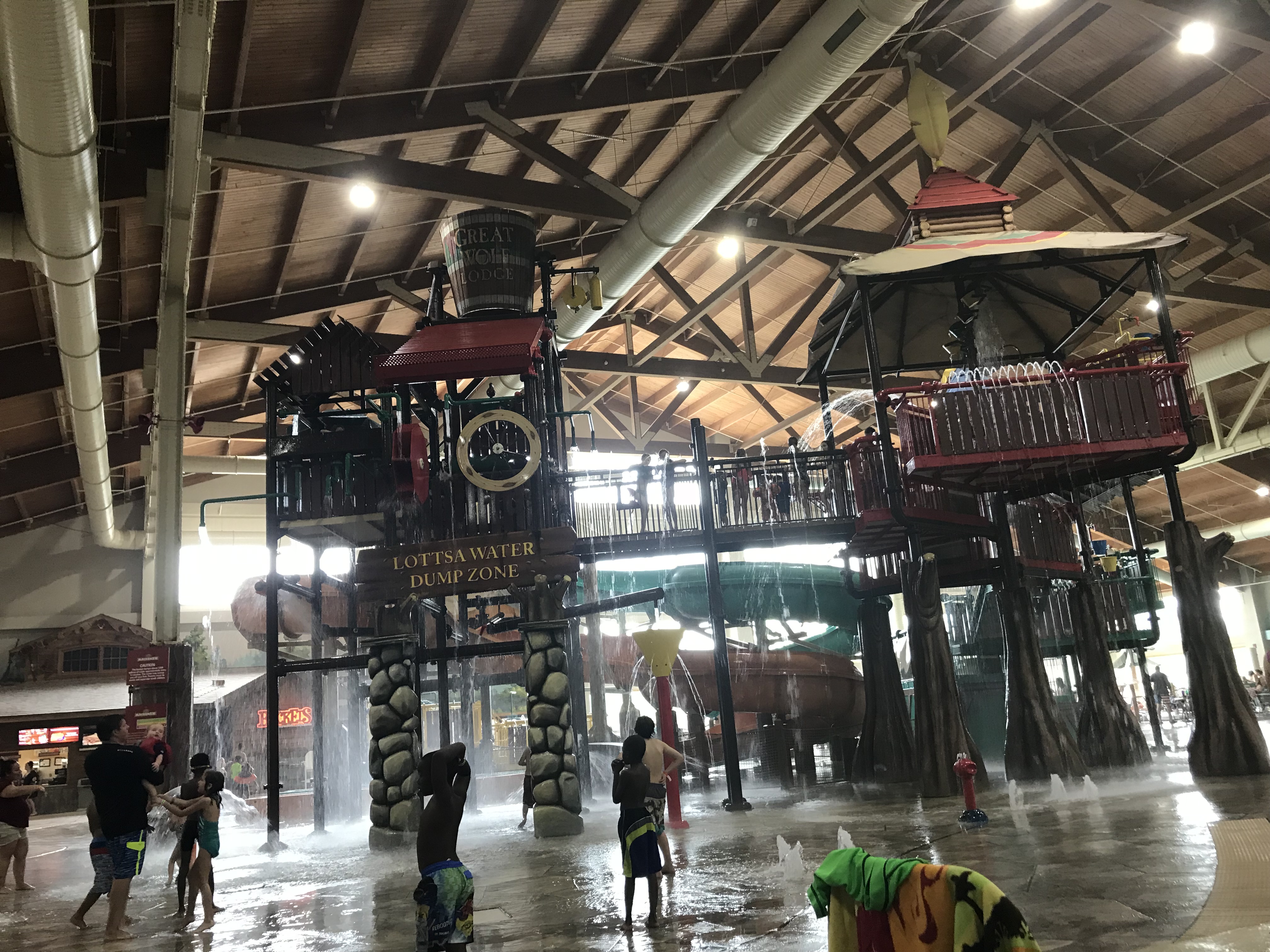 Pour ce Fall Break nous avons donc pris des vacances typiquement américaines et nous avons passé 3 jours dans un parc aquatique de la chaine Great Wolf Lodge. Il y a de nombreux parcs aquatiques Great Wolf Lodge à travers les Etats-Unis, nous en avons 2 près de nous, un à Williamsburg, VA et un à Charlotte, NC. C’est dans ce dernier centre que nous avons passé les 3 jours de vacances.